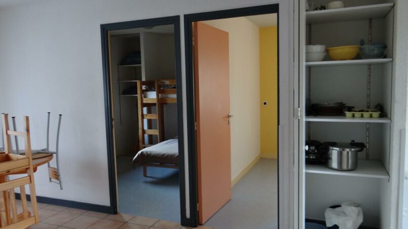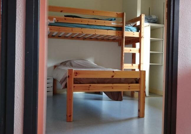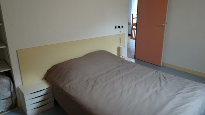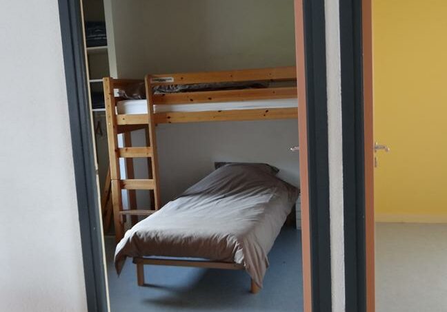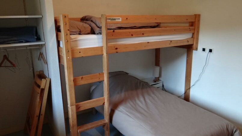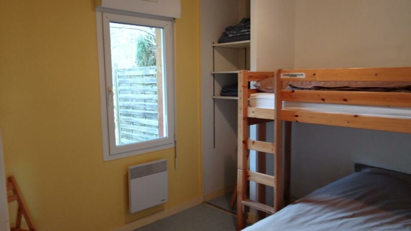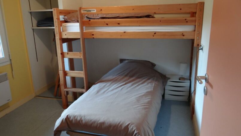Une chambre « adultes » avec un lit double (140×190)* ainsi qu’une chambres « enfants » avec un lit simple (90×190)* et un lit en hauteur (90×190)* (draps fournis pour l’ensemble des lits **).