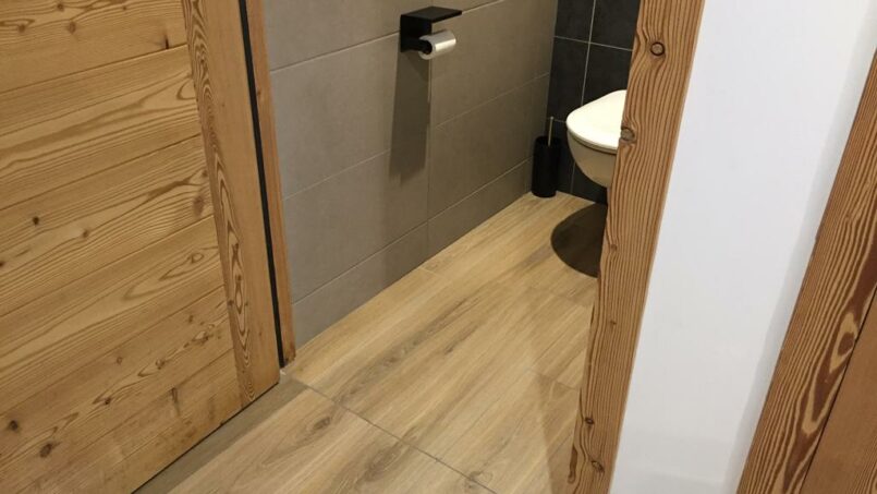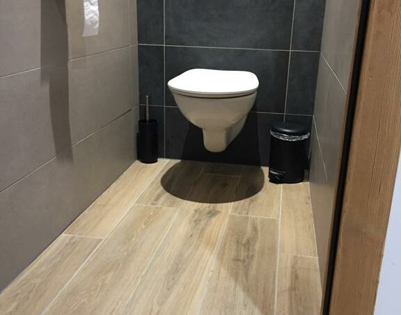 Il dispose d’une chambre avec un lit double (160×200), d’une salle de bain avec douche à l’italienne (entrée dans la douche étroite – impossible de rentrer dans la douche avec un fauteuil roulant) et de toilettes séparées (pas d’espace de transfert).