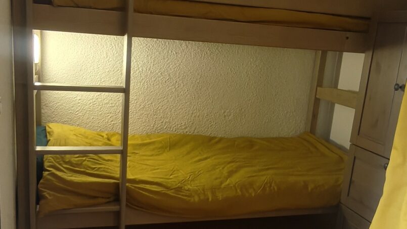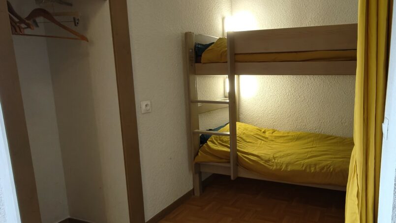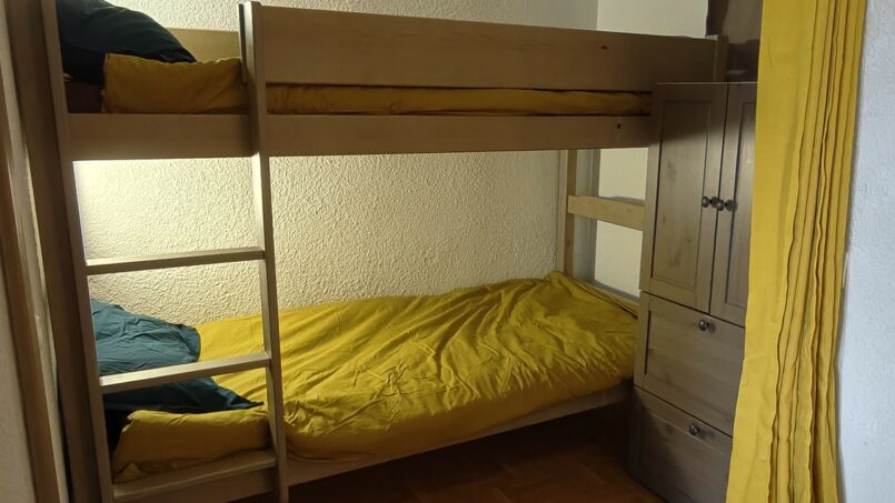 A droite, le coin montagne avec ses deux lits superposés et sa penderie.