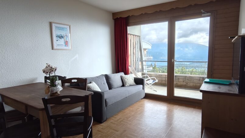 Découvrez un appartement situé au dernier étage avec ascenseur, à Chamrousse 1750, avec une vue panoramique plein Sud sur les massifs environnants et la forêt en contrebas. Avec ascenseur, l’appartement modernisé est très accessible et peut accueillir des PMR. Confort optimal avec chambre, salon, cuisine équipée, coin montagne salle de bains et très grand balcon. La résidence propose également des services tels qu’un parking gratuit, une piscine et un local à ski pour un séjour inoubliable !