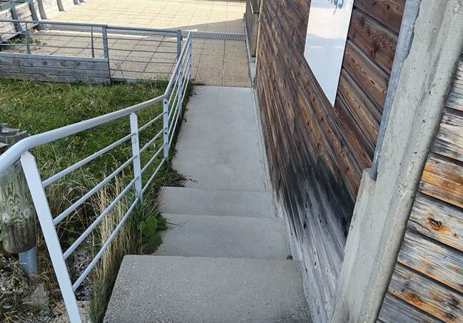 La piscine n’est pas accessible aux personnes en fauteuil roulant (3 marches de moins de 130 cm de profondeur non évitables)