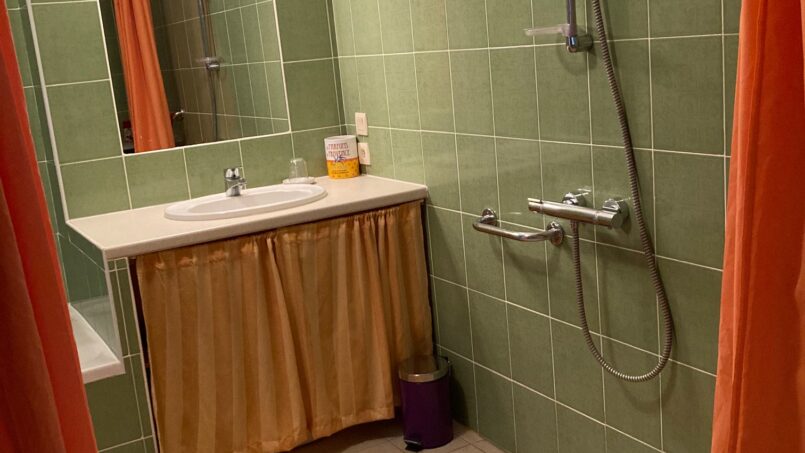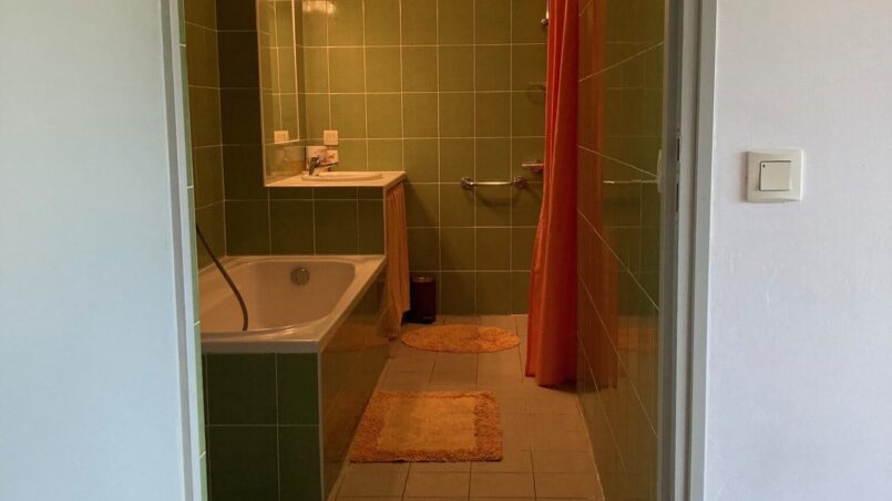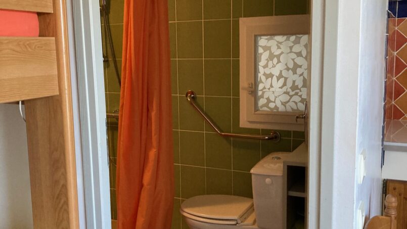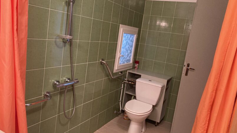 Salle de bain avec baignoire, douche à l’italienne et wc, avec 2 portes afin que chaque couchage y ait un accès.