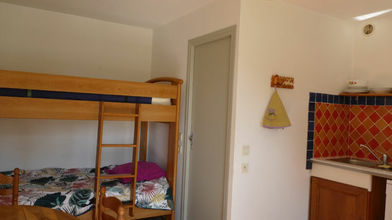 1 salon /chambre avec lit en 160 et 1 chambre/cuisine équipée, avec 2 lits superposés dans une alcôve de la cuisine.