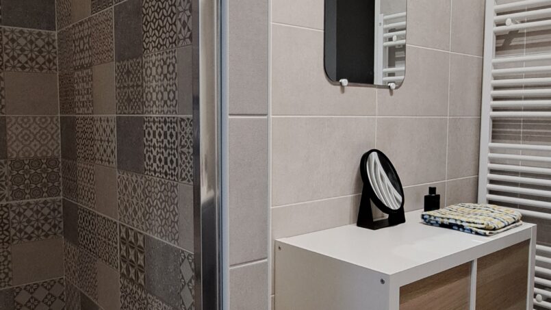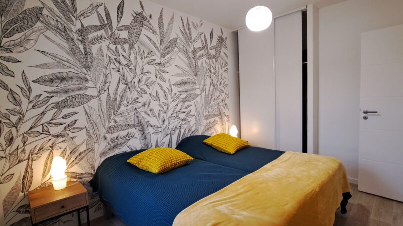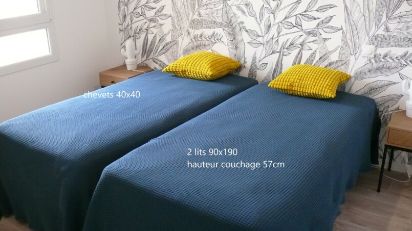 -une chambre avec 2 lits de 1 personne (90×180) équipée d’un placard de rangement.
