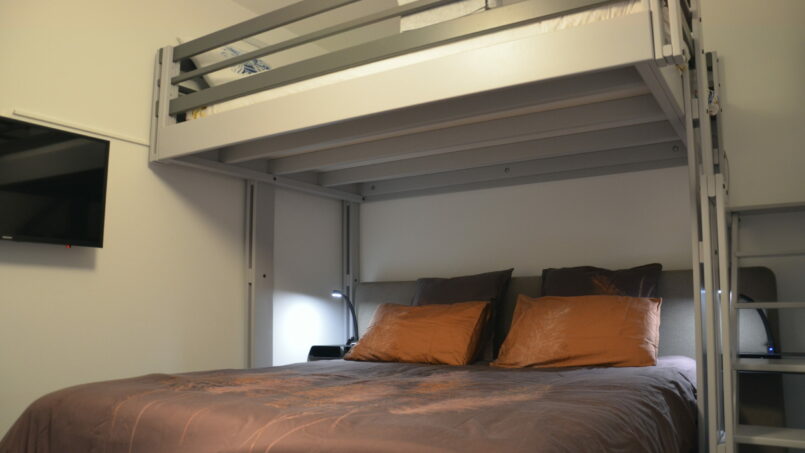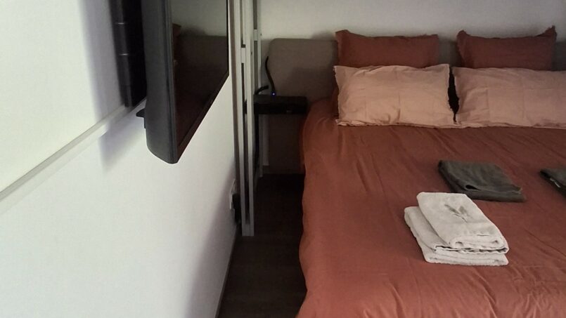 – Lit double 160×200 équipé de matelas et sommier neufs et de très haute qualité