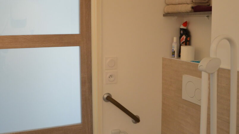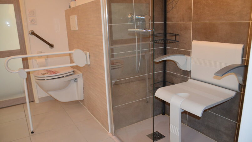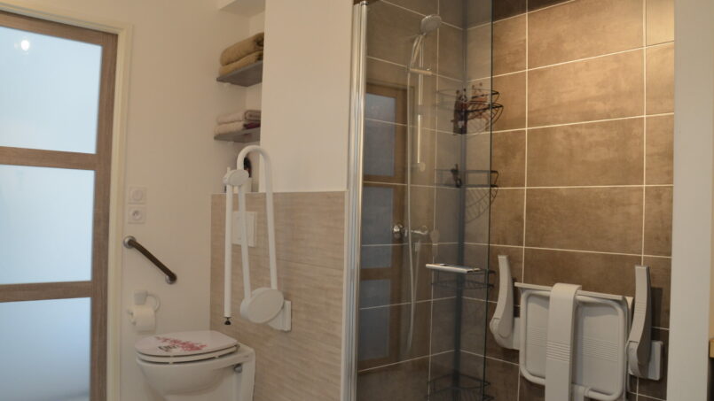 – Douche à l’italienne avec siège de douche et accoudoirs escamotables