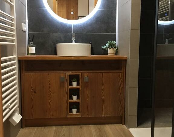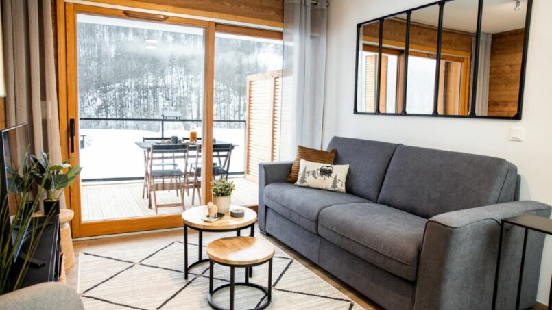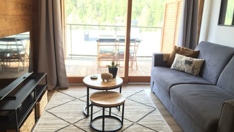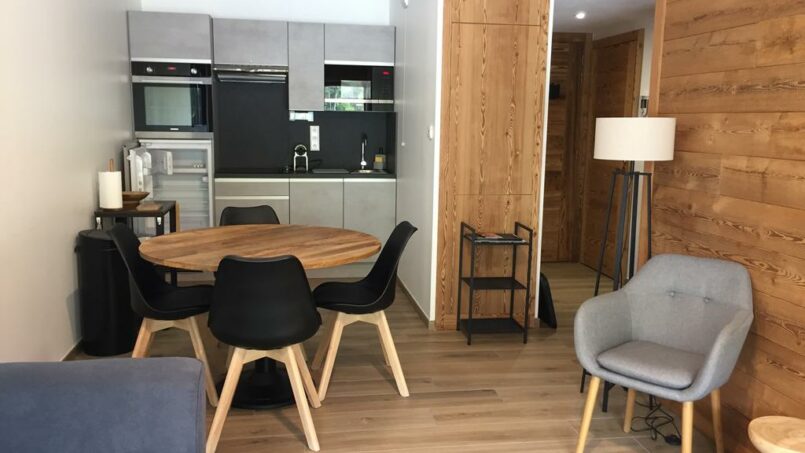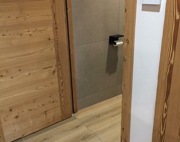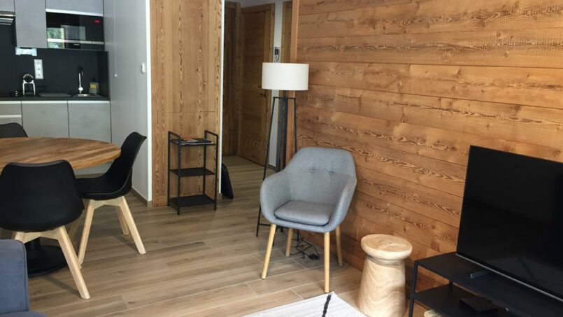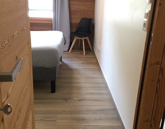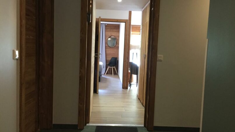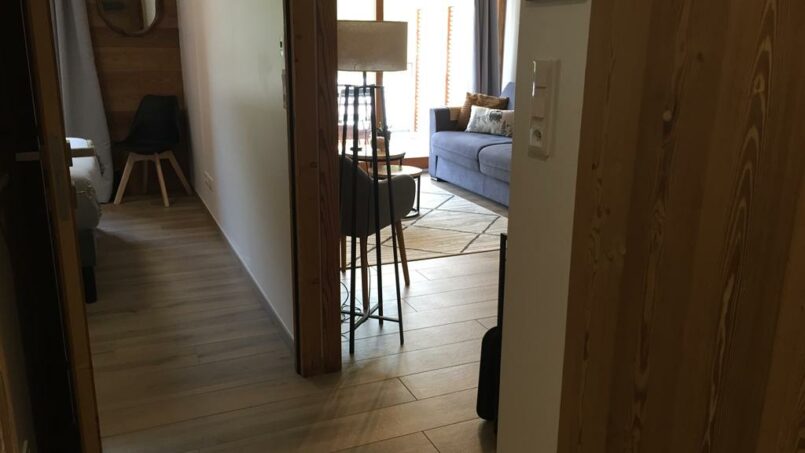 Au 1er étage d’un immeuble récent (2022) avec grand ascenseur, situé à 450 m des remontées mécaniques et des commerces/bars/restaurants (par un chemin plat), notre appartement est accessible sans franchir de marche ou de rupture de niveau de plus de 2.5cm.