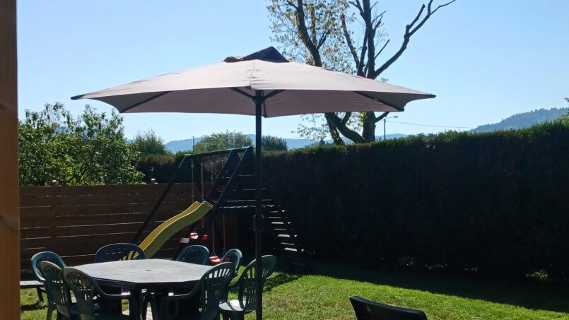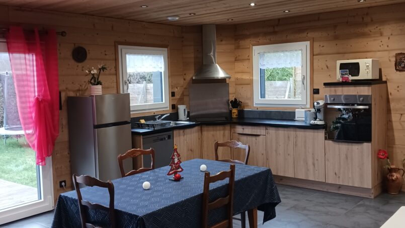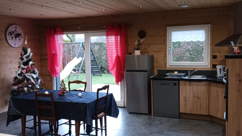 Aux portes des Hautes Vosges, chalet spacieux neuf totalement indépendant de 95 m² de plain-pied ( accès aux personnes à mobilité réduite), exposition plein sud (classé 4 étoiles en meublé de tourisme) et disposant d’un abri .