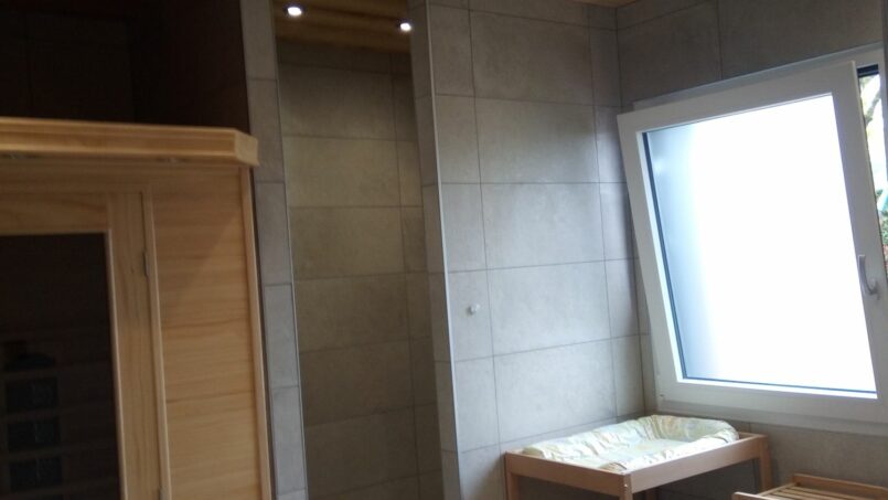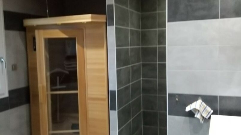 – une grande salle de bain avec SAUNA INFRA 2 personnes et chromothérapie, grande douche italienne, d’un lavabo, d’un sèche serviettes, sèche cheveux… – WC séparés – une buanderie avec lave linge, nombreux rangements (avec appareils à raclette, à gaufres et croque monsieur, fondue au chocolat…) et babyfoot…