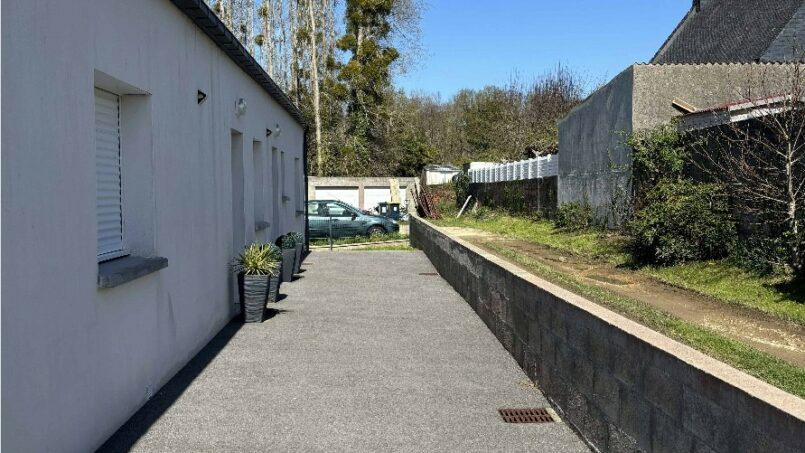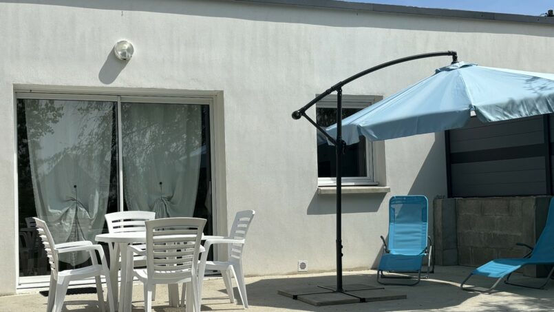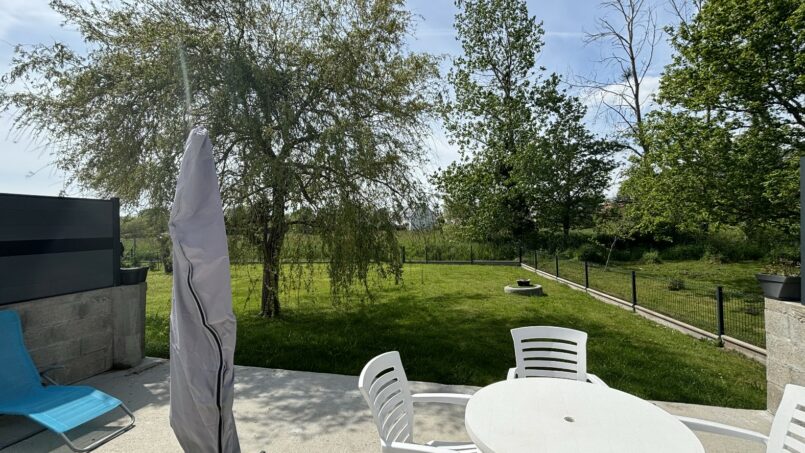 À l’extérieur, vous profiterez d’une terrasse bétonnée privative, aménagée avec un salon de jardin, parfaite pour savourer un moment de tranquillité, prendre vos repas ou vous détendre au grand air.