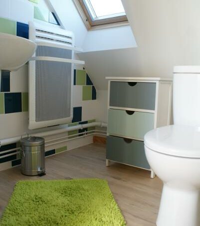 – 1 chambre (2 lits 1 personne 90x200cm séparables) avec salle d’eau et wc attenant,
