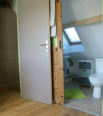 1er étage : – 1 chambre (3 lits 1 personne 90x200cm – possible mise en place 1 lit double + 1 lit simple), – wc avec lavabo.