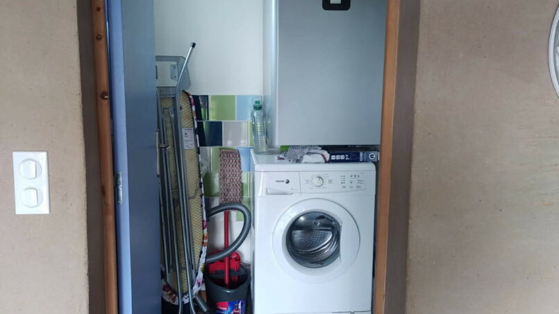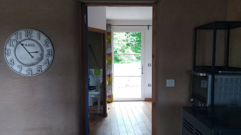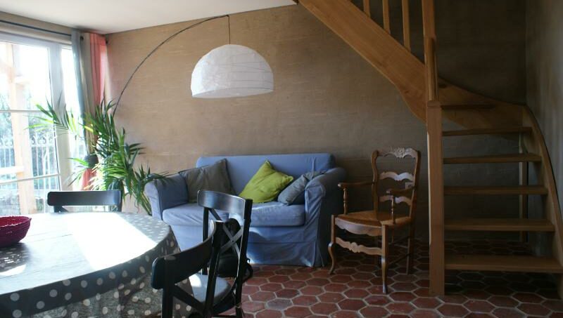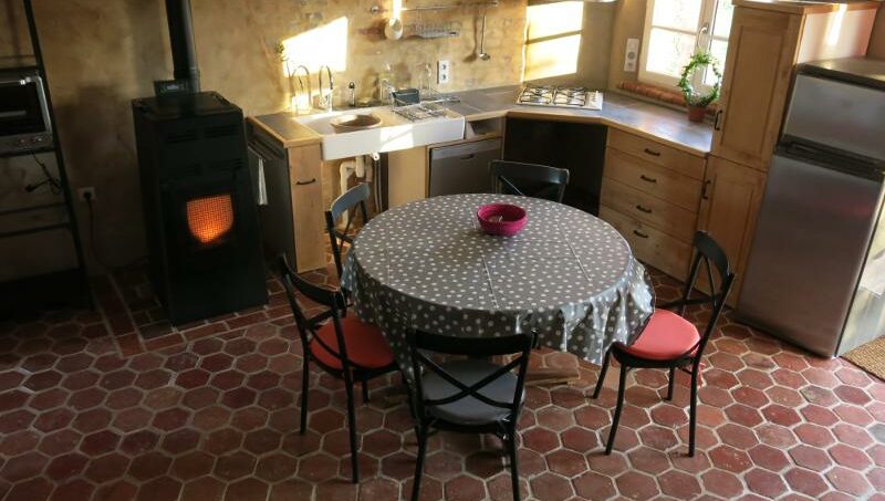 Rez-de-chaussée : – cuisine ouverte entièrement équipée – salon-salle à manger avec TV et poêle à granulés automatique (6€/sac avec autonomie de 24h environ),
