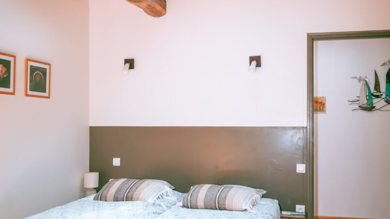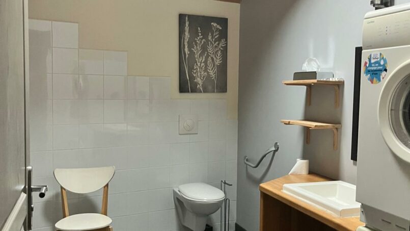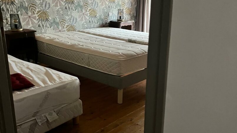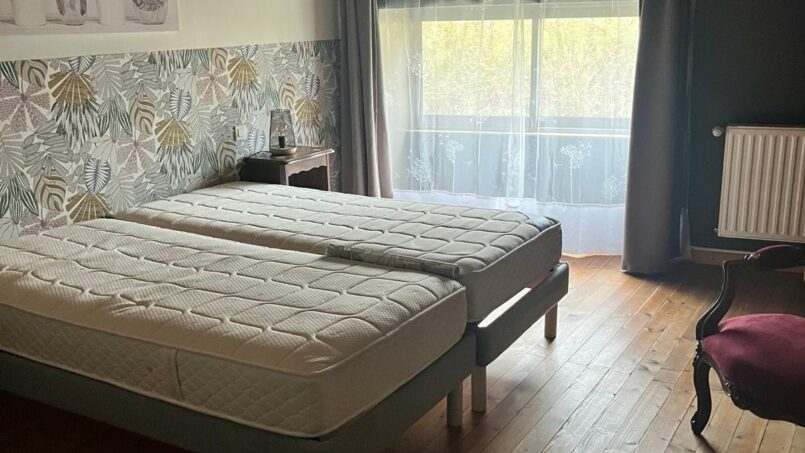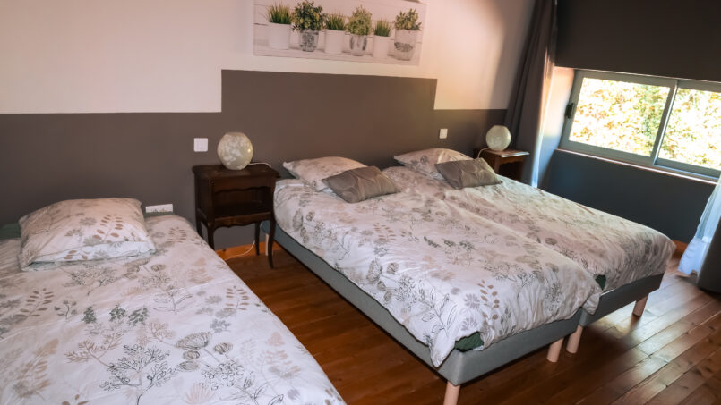 d’une chambre avec 2 lits en 80cm, de 2 chambres avec chacune 2 lits en 90 (+ 2 lits-parapluie), dont une avec salle de bain communicante, d’une salle d’eau conçue pour les personnes à mobilité réduite et handicapées avec WC et un WC indépendant.