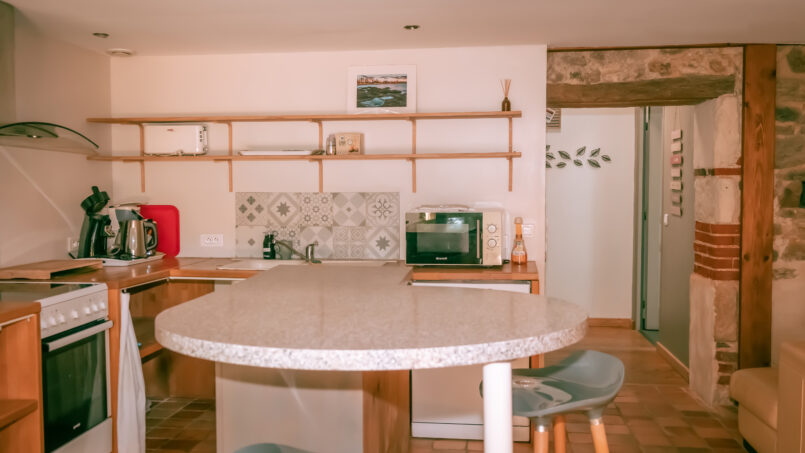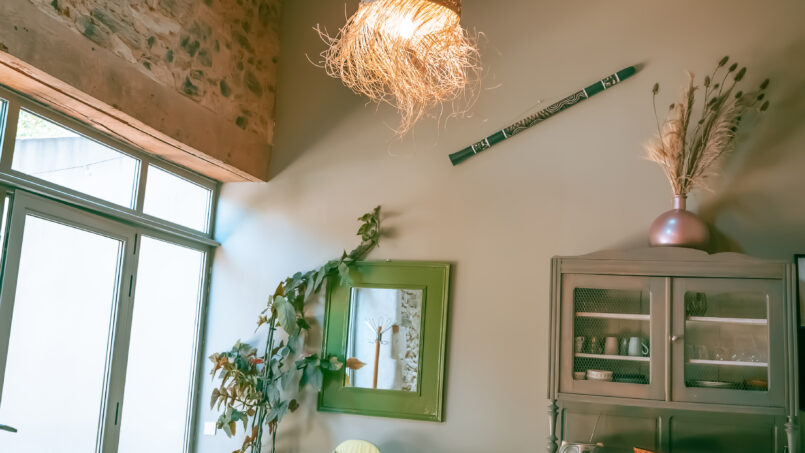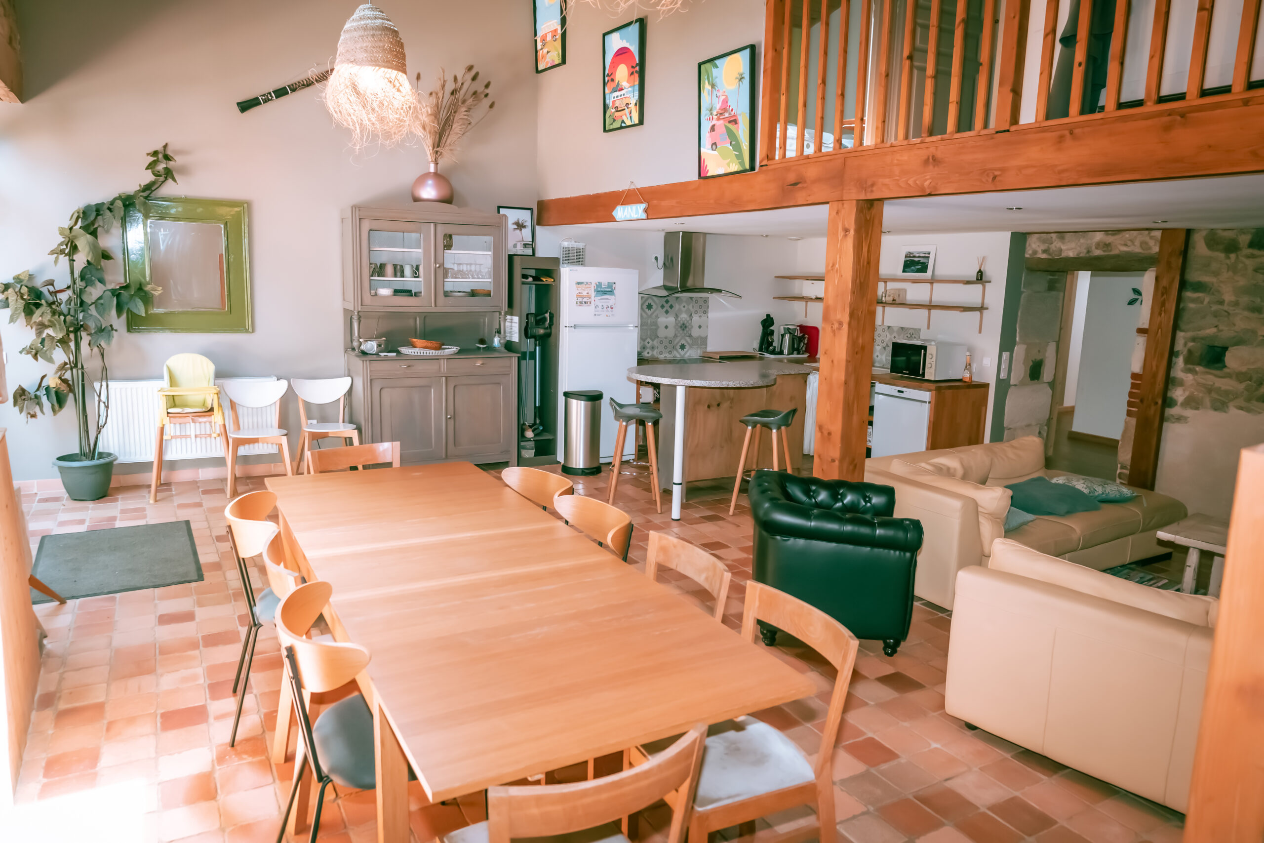 Le Gîte décoré sur le thème de l’Australie et des voyages se compose au rez-de jardin d’une spacieuse pièce de vie avec espace salon – cuisine équipée – coin repas,