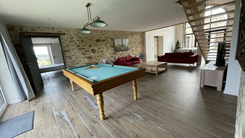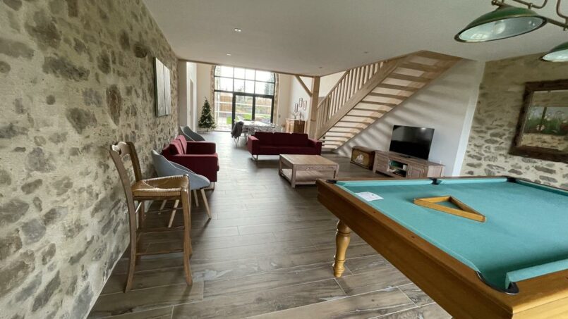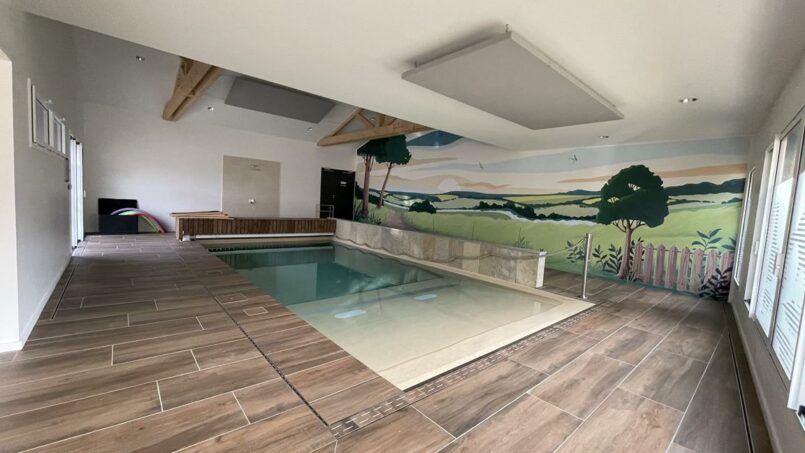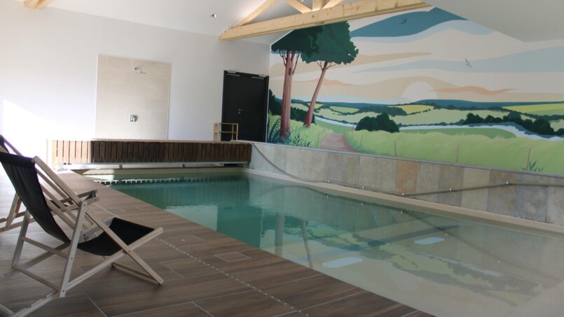 Ce gîte partage, avec un autre gîte de 15 personnes, une piscine intérieure, chauffée toute l’année, accessible grâce à sa pente douce.