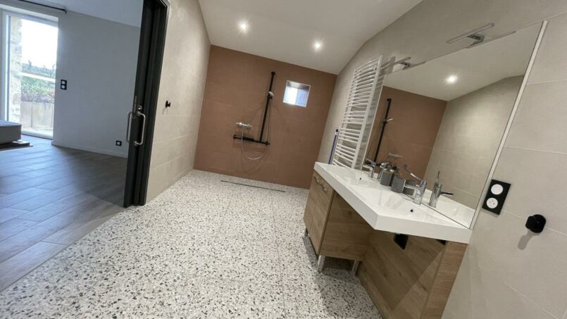 – 2 grandes salles d’eau accessibles PMR (un brancard douche disponible/fauteuil de douche),