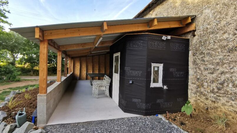 une terrasse directement accessible depuis la cuisine, couverte avec un abri, offrant ainsi une pièce à vivre supplémentaire quelque soit le temps et la saison.