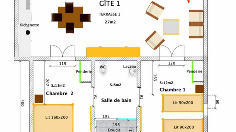 Le gîte est spacieux et confortable, de plain-pied, adapté pour accueillir des personnes handicapées en fauteuil roulant, accompagnées d’une tierce personne.