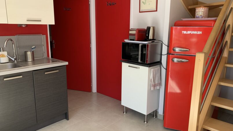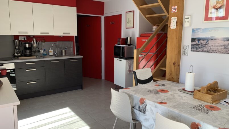 – une cuisine équipée ouverte sur le séjour ;