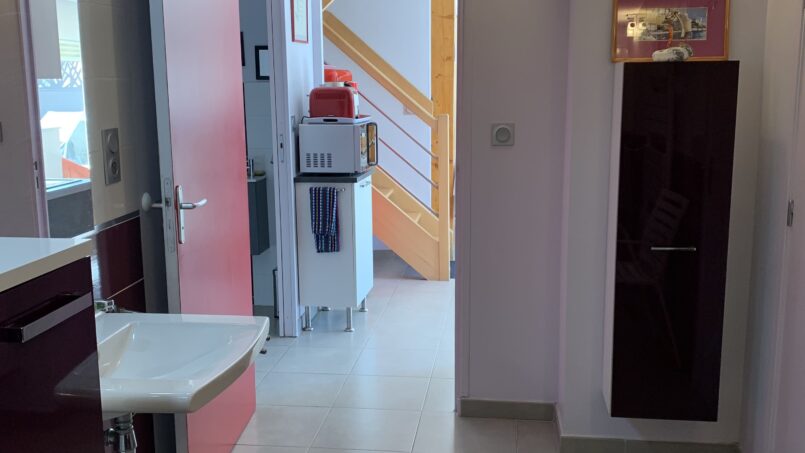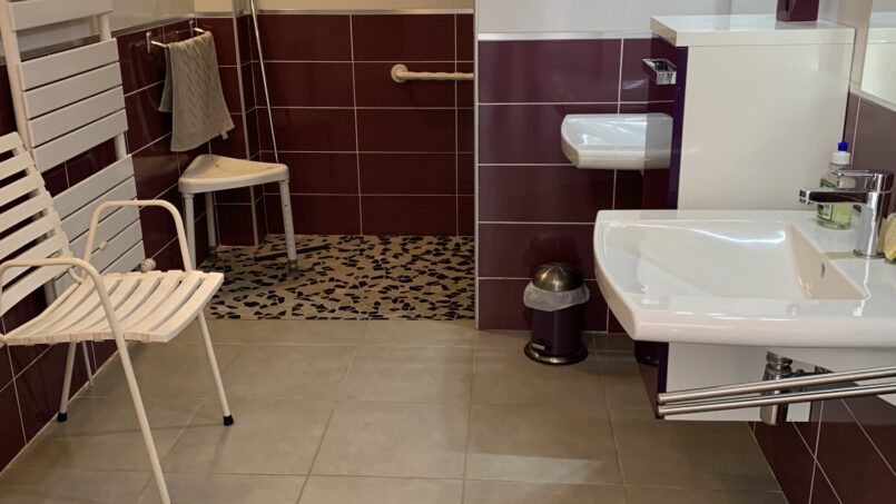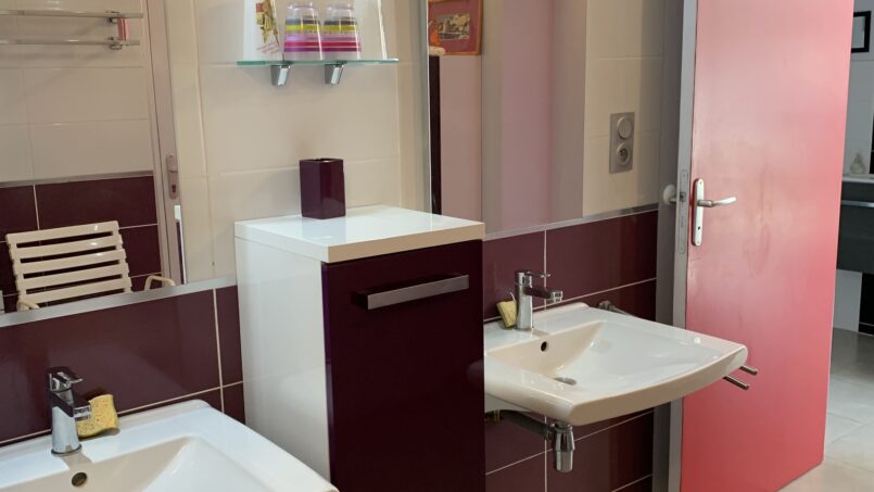 – 1 salle d’eau avec 2 lavabos, douche italienne avec barres d’appui
