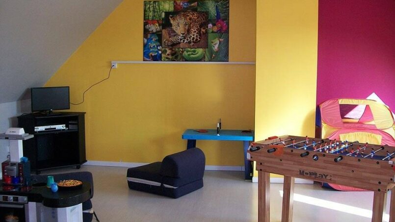 une salle d’eau avec WC et une salle de jeu 30 m².
