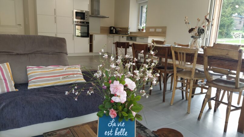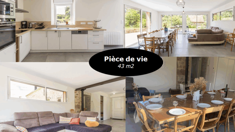 Idéal pour des retrouvailles en famille, entre amis, séminaires, le gîte offre une pièce de vie de 43 m2, 4 chambres , 2 salles de douche.