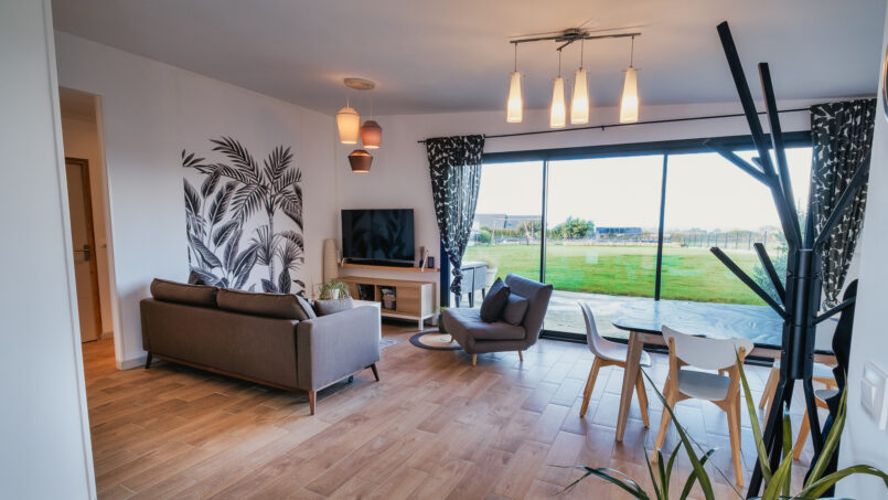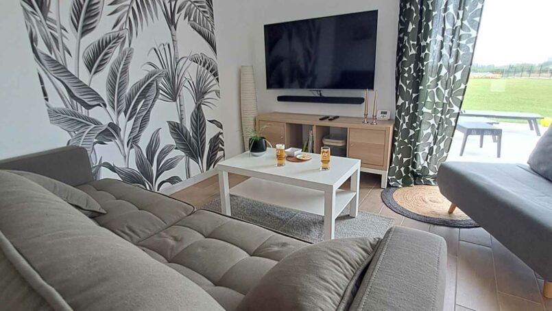– Salon lumineux avec canapé et fauteuil convertibles, TV et barre de son