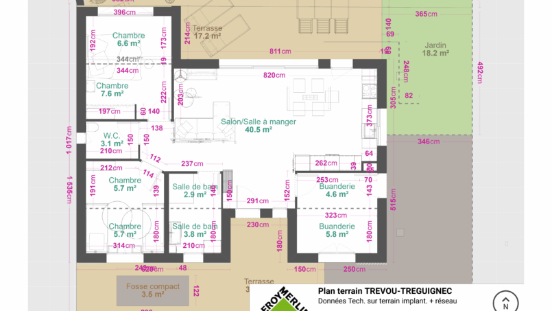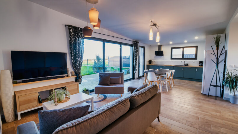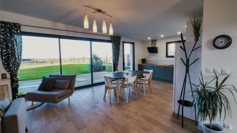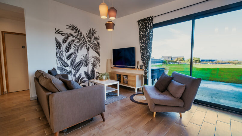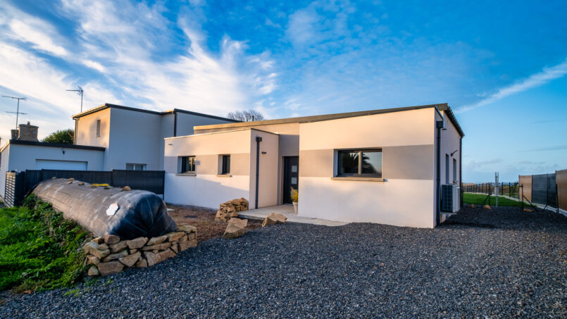 Notre maison de plain-pied de 86 m² vous accueille dans un environnement paisible, à 4 minutes des plages de Trévou-Tréguignec, sur la Côte de Granit Rose.
