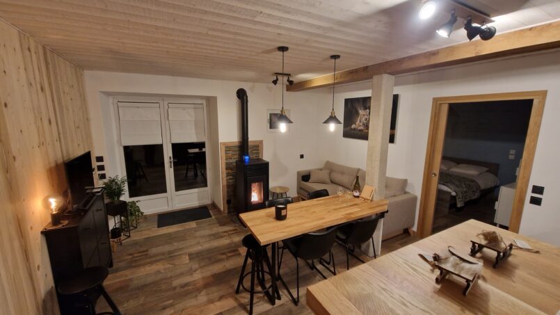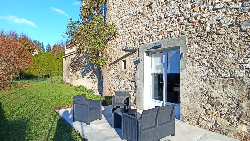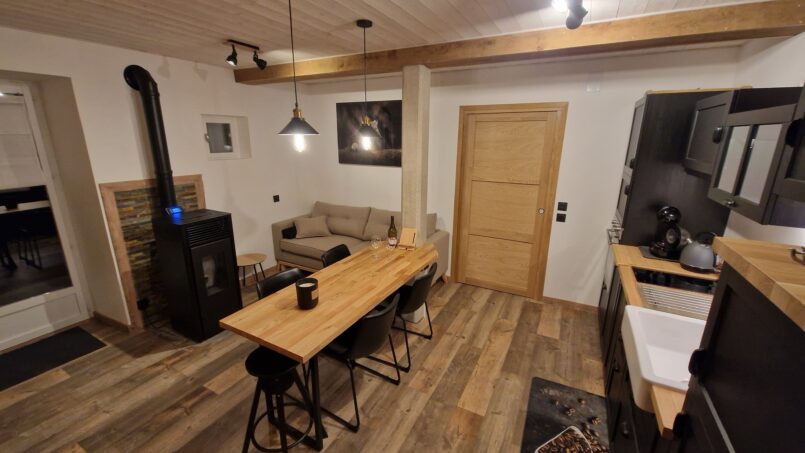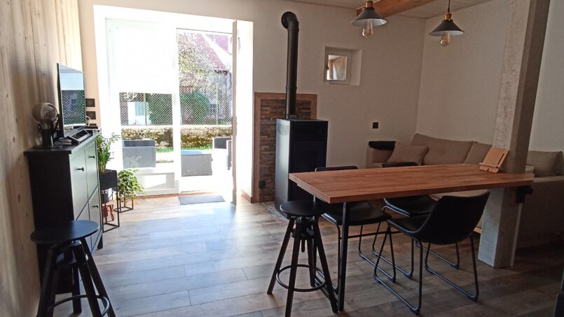 C’est dans ce cadre et dans une maison en pierres que nous vous proposons un Gîte cosy de caractère neuf, de 45 m2, indépendant, accessible et équipé pour les personnes à mobilité réduite. Utile aussi… vous trouverez dans le village des petits commerces, épicerie, boucherie, restaurant, et même un service postal. Pour votre confort, ce Gîte est en plain-pied avec entrée indépendante, une terrasse extérieure, une belle pièce à vivre avec cuisine toute équipée, une chambre indépendante lit double, et une grande salle de bain. Le poêle à granulés vous réchauffera lors vos soirées cocooning ! Services TV et internet inclus. Vous disposerez de linges de bain et de lit.