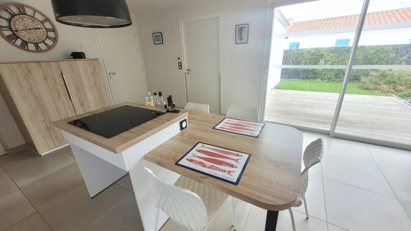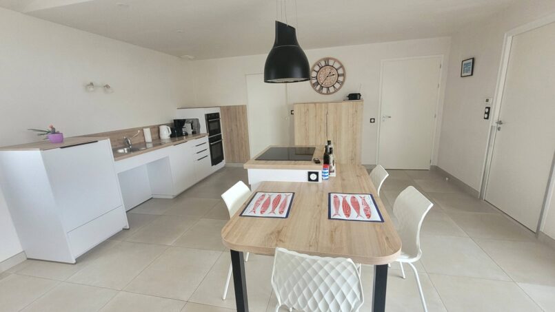 – d’une belle pièce de vie de 41 m² avec une cuisine moderne fonctionnelle et entièrement équipée et adaptée, dotée d’un îlot central