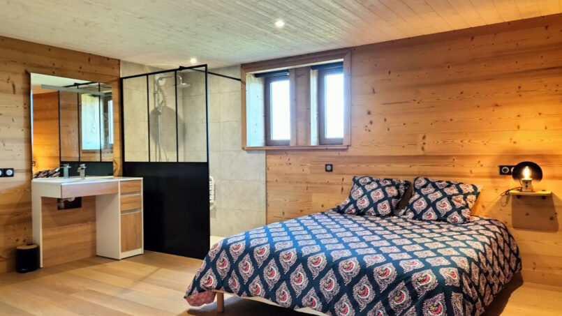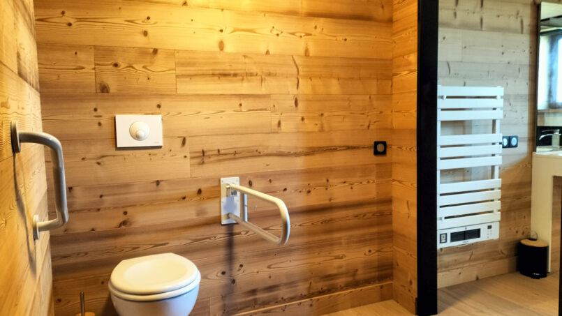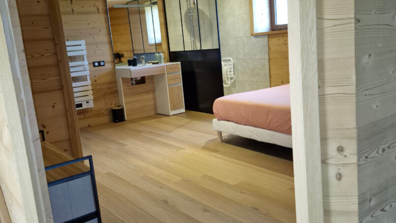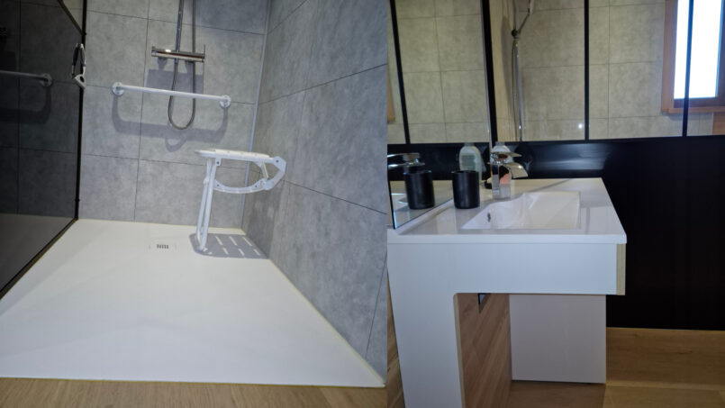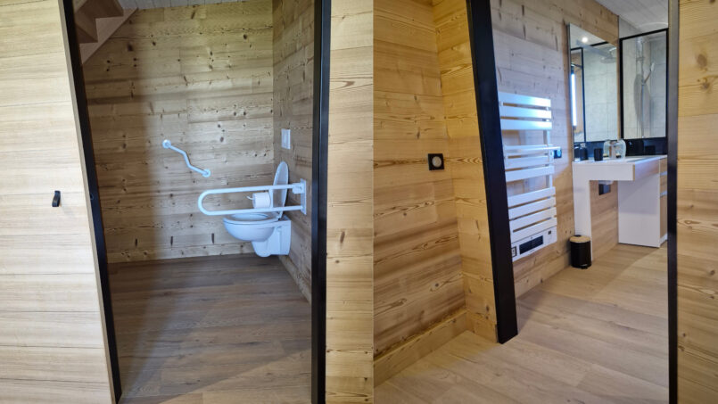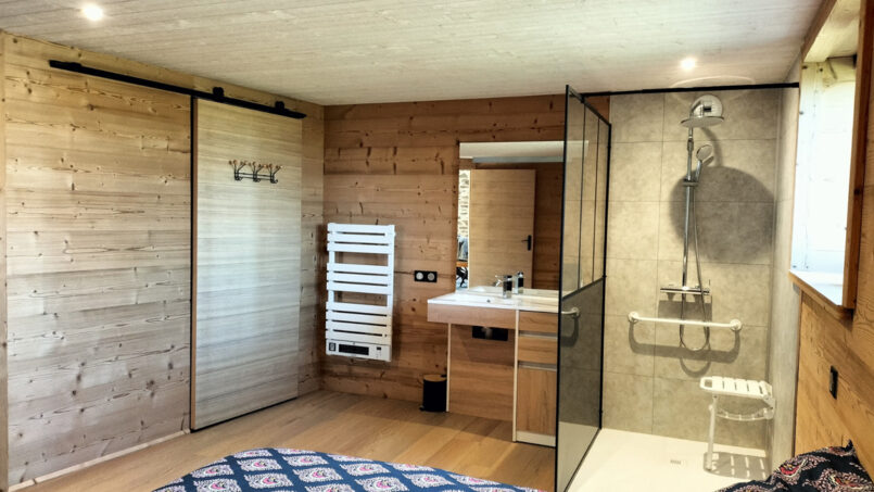 – 1 grande chambre avec douche italienne et WC (séparé par une porte) pensée pour les PMR