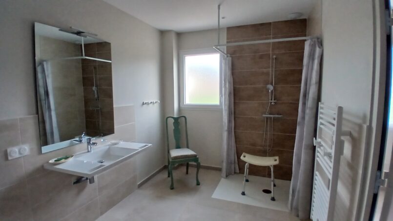 Notre hébergement, entièrement accessible aux personnes à mobilité réduite (P.M.R.), peut accueillir jusqu’à 15 personnes et se compose de :