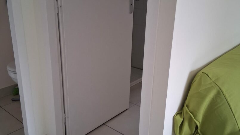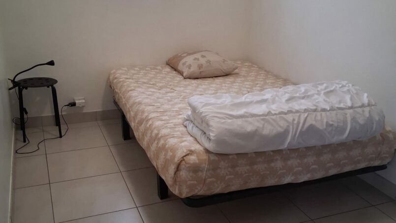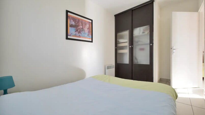 1 lit armoire avec un sommier à lattes en 140×190 dans pièce à vivre