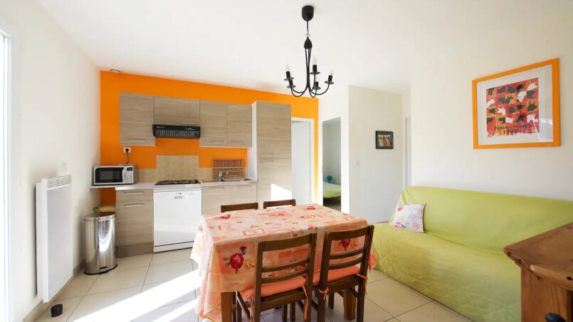 Equipement : Vaisselle/couverts, Ustensiles cuisine, Réfrigérateur, congélateur, Combiné Four/Micro onde, plaque de cuisson, lave vaisselle, lave linge, barbecue, téléviseur avec port USB, cafetière, bouilloire électrique.