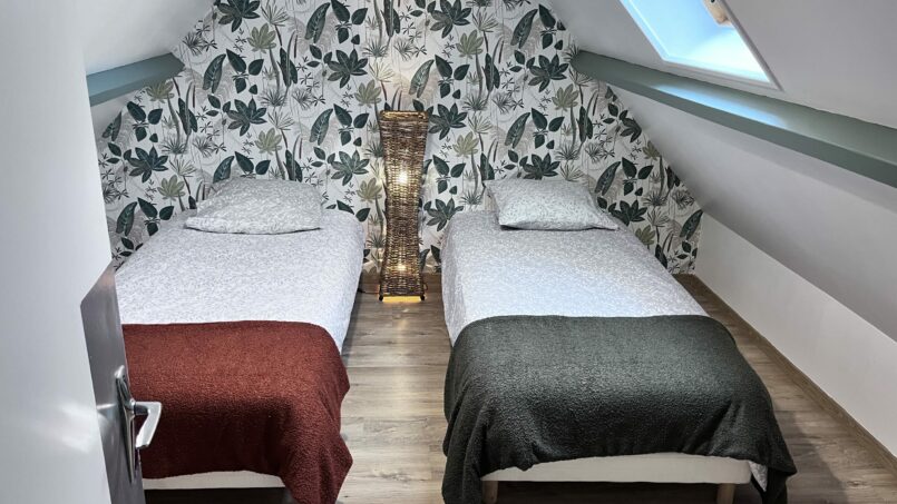 2 chambres , l’une avec 2 lits simples et l’autre avec 1 lit 160×200