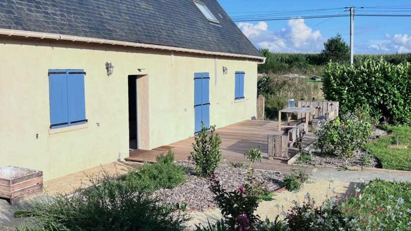 2 gîtes côte à côte : 1 gîte accessible aux PMR et handicap visuel (qui peut être réservé séparément – voir annonce « Gîte inclusif 7 personnes sur la côte normande ») pouvant accueillir 7 personnes et 1 plus petit gîte non PMR pouvant accueillir 5 personnes