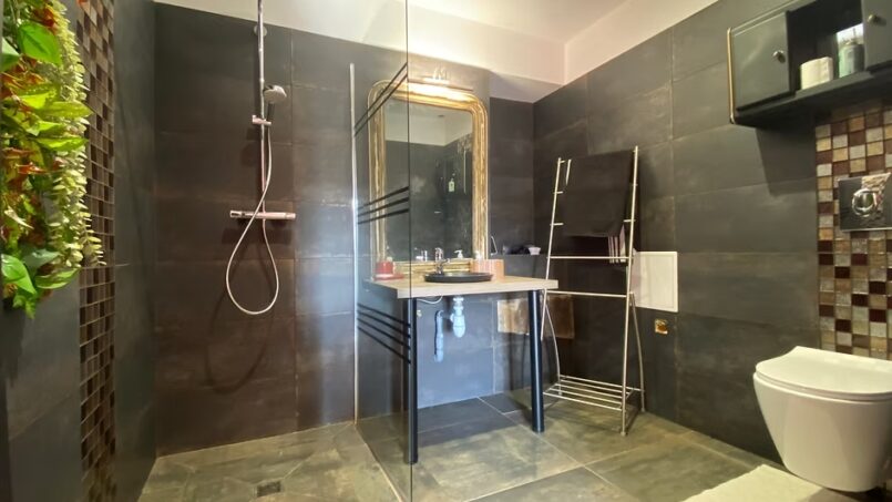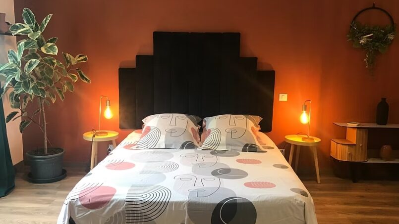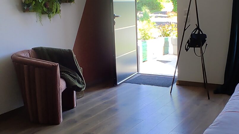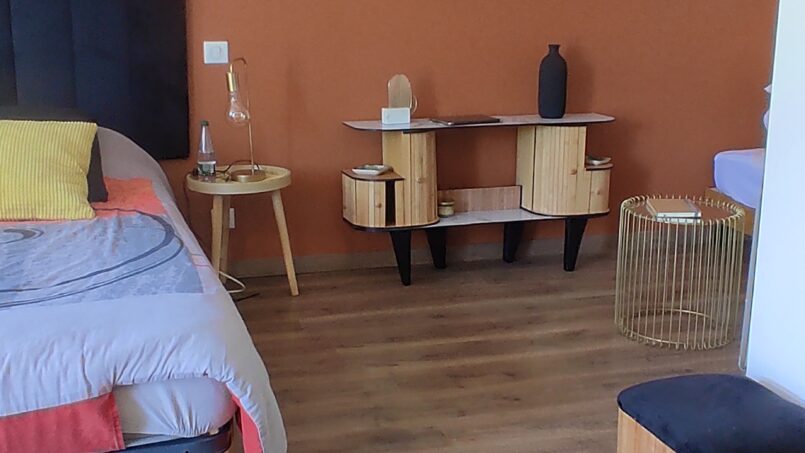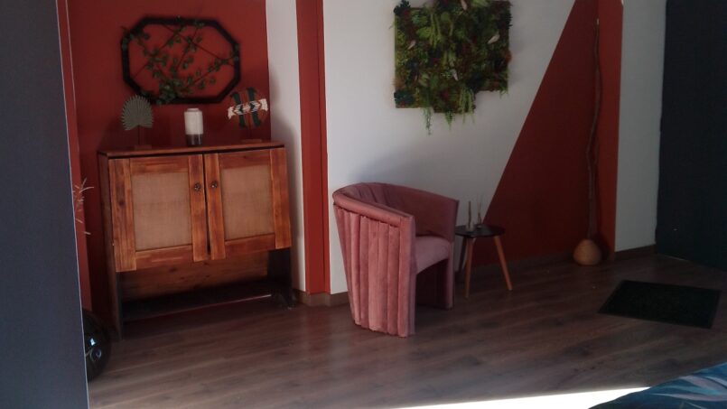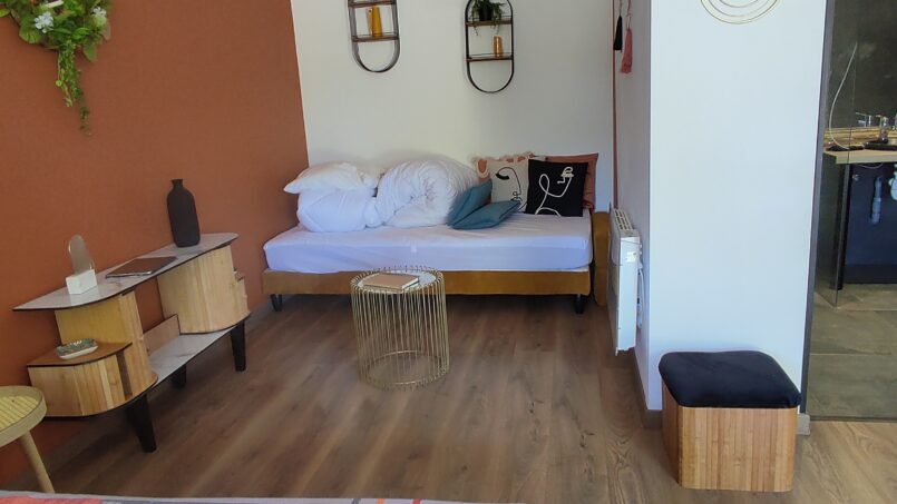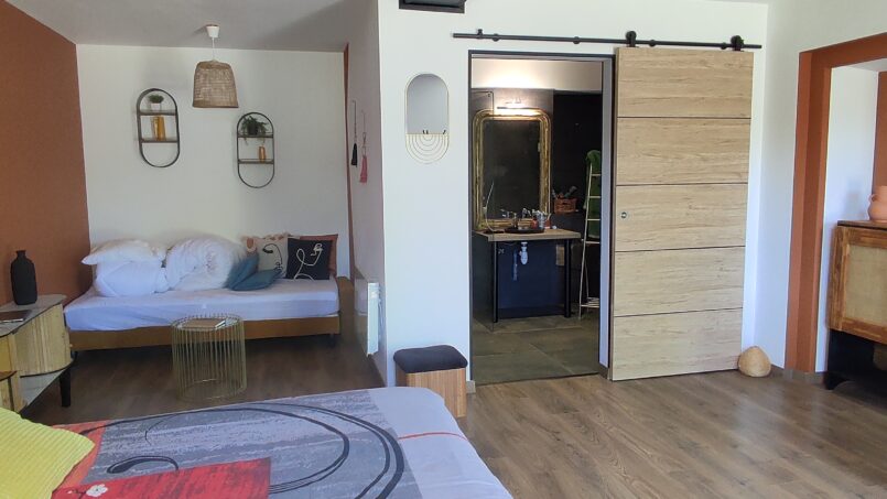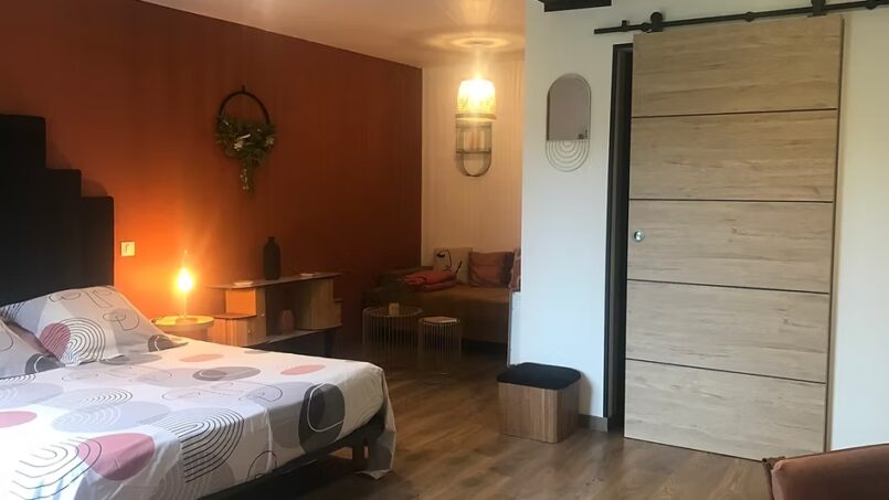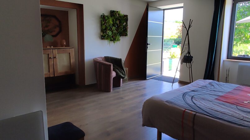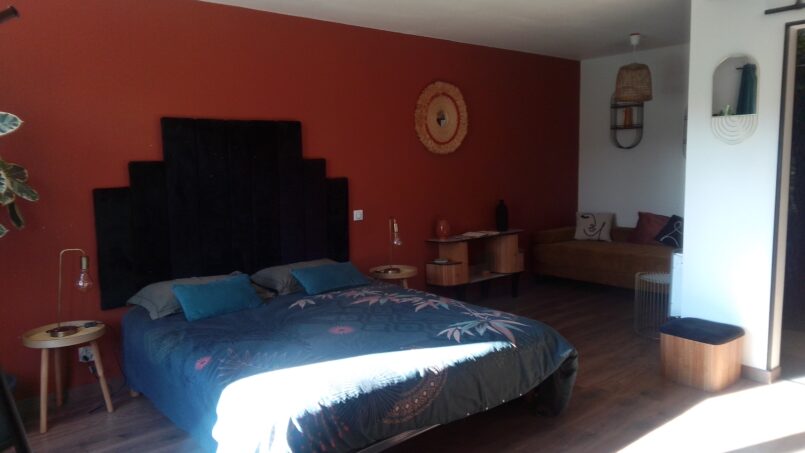 Vaste chambre située au rez-de-chaussée et disposant d’un accès indépendant. Terrasse privative avec salon de jardin et parasol