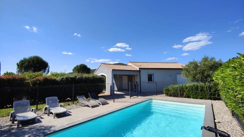 LOCATION VILLA DE PLAIN-PIED TRÈS BIEN ÉQUIPÉE AVEC PISCINE PRIVATIVE A VALLON PONT D’ARC – ARDECHE. QUARTIER CALME A 200 MÈTRES DU CENTRE VILLE.