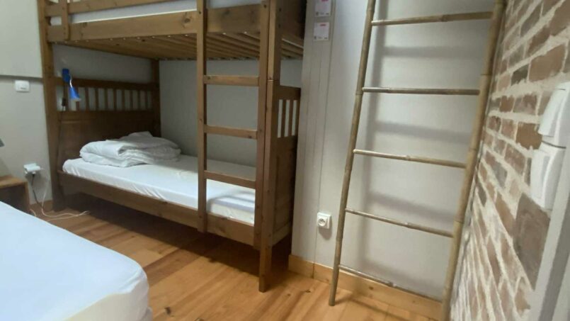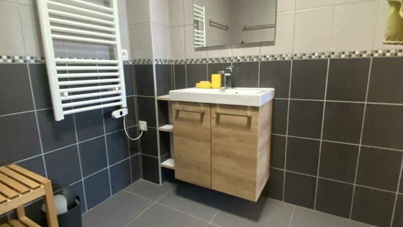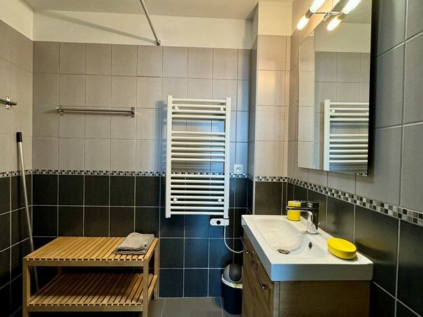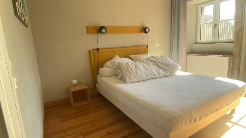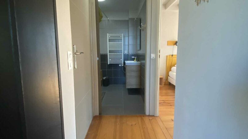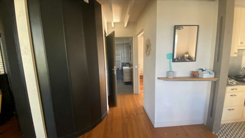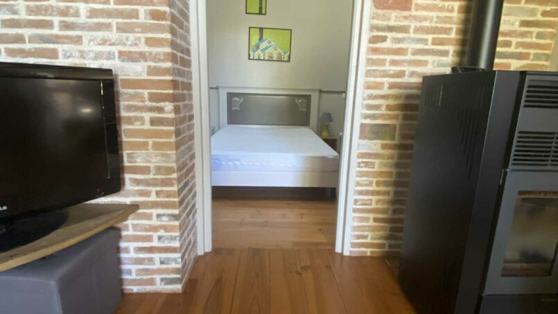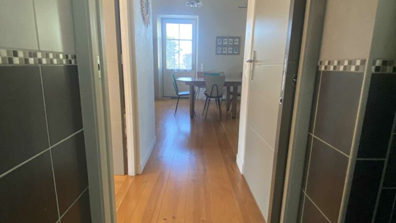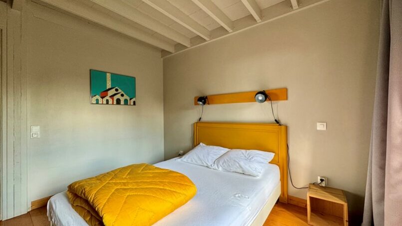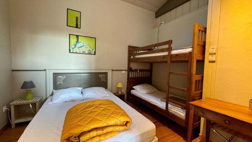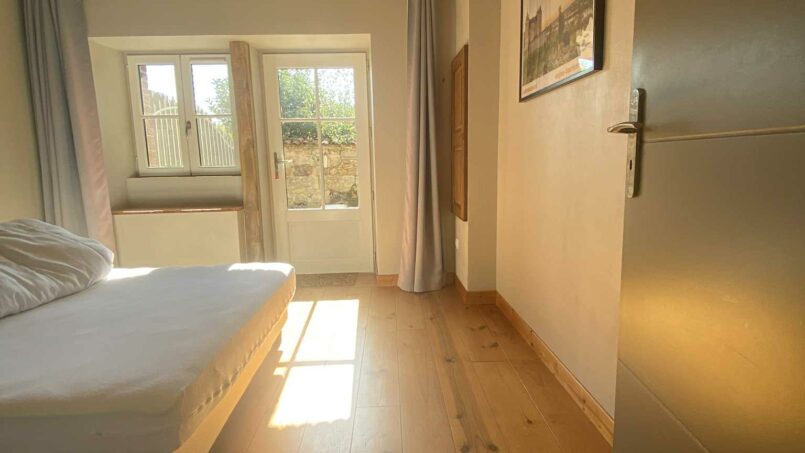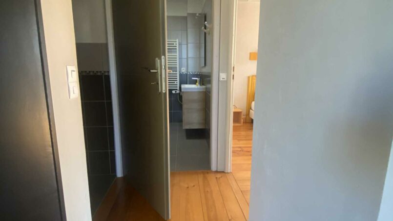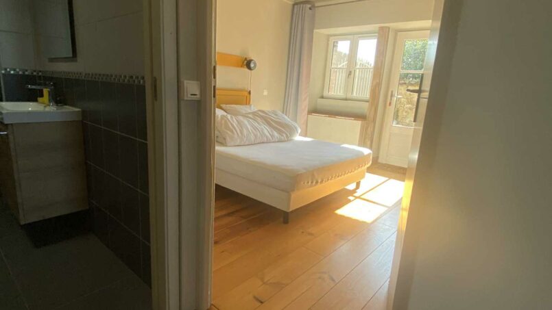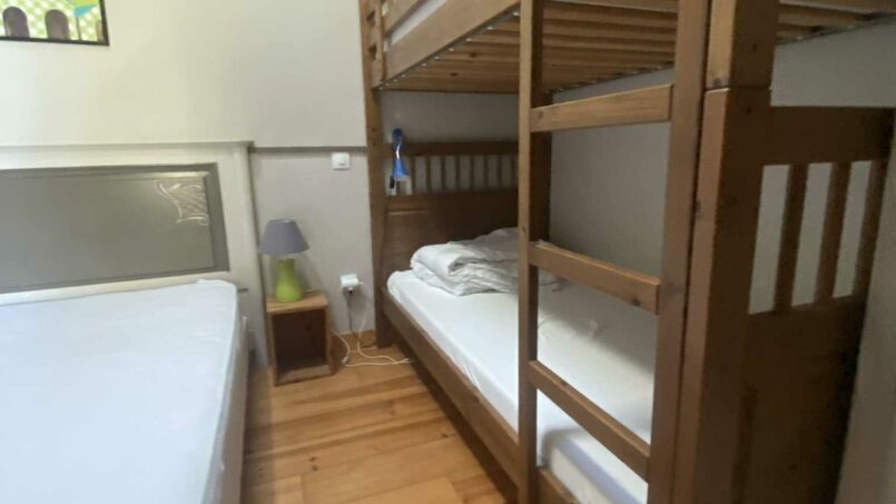 2 chambres de plain-pied, une seule chambre avec lit double (140 x 190) accessible en fauteuil. Entrée, cuisine, salon, WC et salle de bain accessibles.