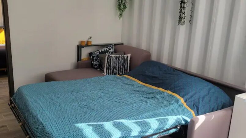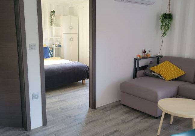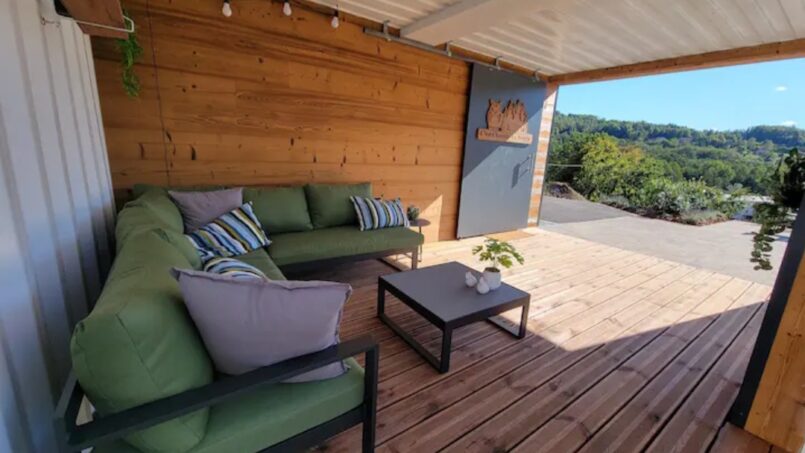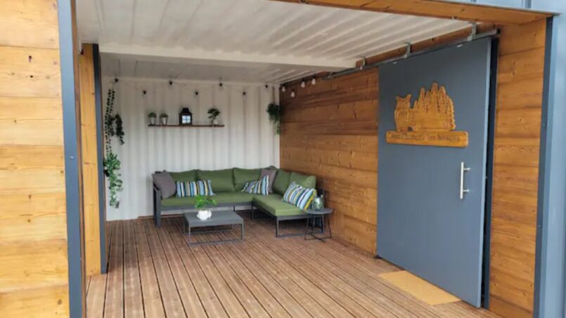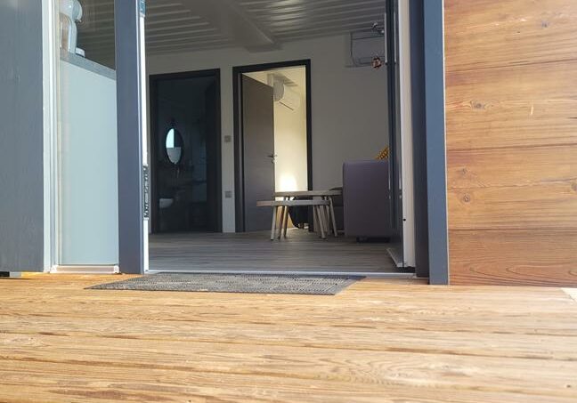 Après avoir parcouru le monde, 2 conteneurs maritimes sont venus s’échouer sur un terrain verdoyant afin de former un logement raffiné et spacieux. Entièrement bâti dans l’idée de vous offrir des vacances reposantes dans un cadre unique, nous avons gardé l’aspect industriel des conteneurs.