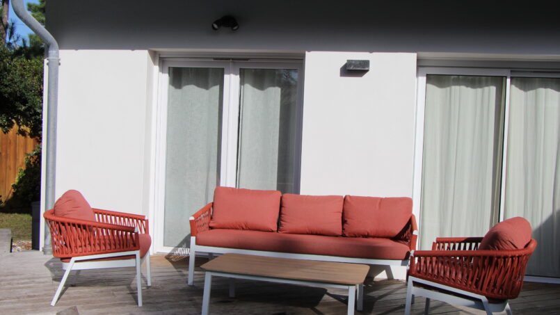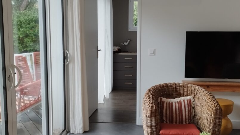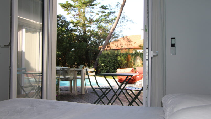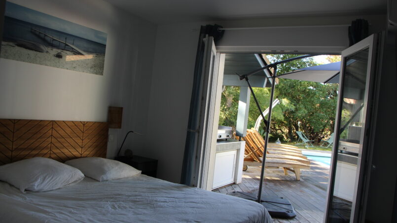 Vous bénéficierez d’une grande terrasse bois de 90 m² orientée plein sud avec piscine chauffée 7x4m sécurisée par un volet immergé, spa 4 places et coin plancha. (La piscine est accessible du 15 mai au 15 octobre, par contre, le SPA, avec ses 39°C, est lui accessible toute l’année).