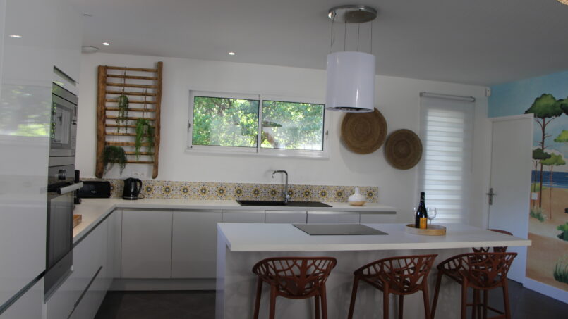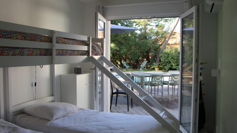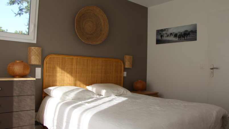 La villa fait 120 m² habitables avec une grande cuisine à îlot central ouverte sur le salon,. 4 chambres douillettes vous accueilleront: 3 chambres avec des lits de 160 x 200 (matelas de 30cm) dont une suite parentale et enfin une chambre avec deux lits superposés de 90×200 (soit 4 couchages) qui ravira vos enfants. 2 salles de bain sont à votre disposition. La maison a donc une capacité maximum de 10 personnes, soit 6 adultes et 4 enfants.