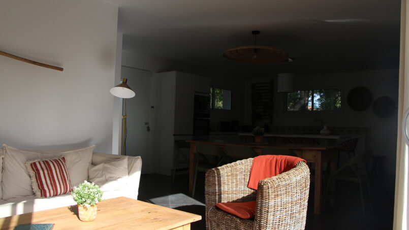 Villa récente et contemporaine pouvant accueillir 8 à 10 personnes dans un quartier résidentiel de Labenne-océan à proximité directe de la plage (200m -derrière la dune- ou 700m pour la plage centrale un peu plus facile d’accès) et de la forêt.