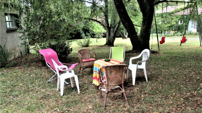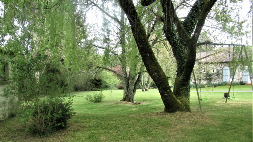 Côté campagne : grande terrasse et vaste terrain d’agrément ou de repos.