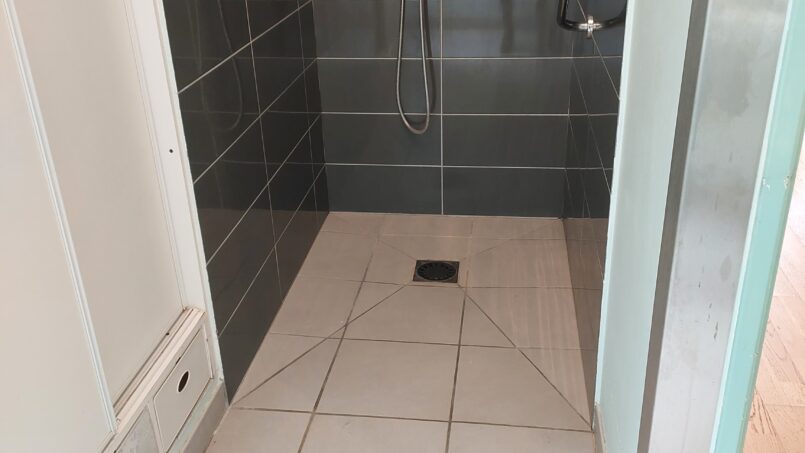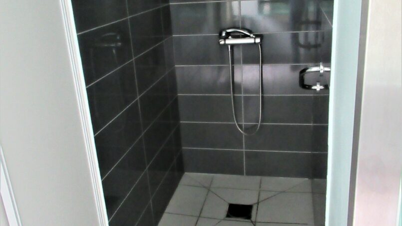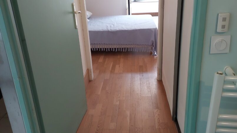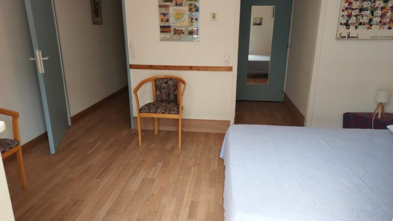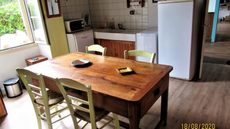 Rez-de-chaussée: chambre avec grand lit, dressing, salle de bains avec douche à l’italienne, salle de séjour, cuisine indépendante. Le tout accessible en fauteuil.