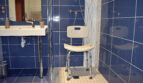 – le rez de chaussée, de plain pied et a été prévu pour recevoir des personnes handicapées : pas de seuil et des portes larges entre les pièces, des prises à bonne hauteur, ……Il comprend une chambre PMR avec une salle de bain privée, une grande pièce à vivre avec des espaces cuisine, salle à manger et TV, un WC et un salon bibliothèque.