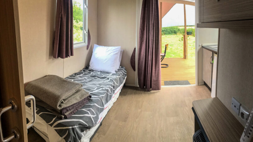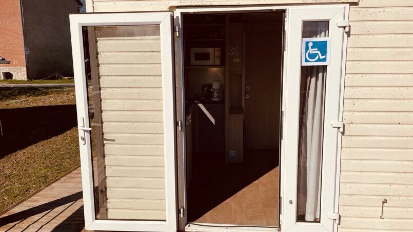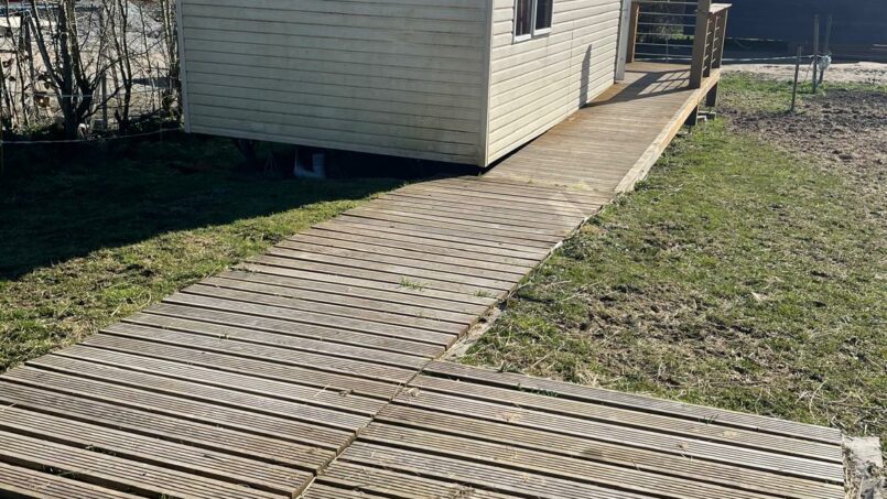 Notre mobil-home et le cheminement sont accessibles aux fauteuils roulants. Il y a un lit médicalisé dans la chambre et dans l’espace cuisine/pièce à vivre il y a un lit simple.