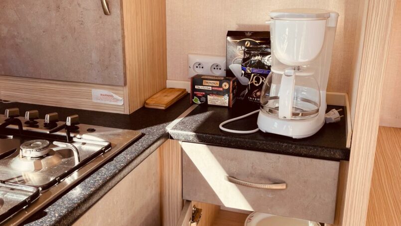 Si vous venez seule, nous pouvons enlever le lit simple afin d’avoir plus de place dans la pièce à vivre. Dans la pièce à vivre nous pouvons mettre une table selon vos besoins et n’oubliez pas de profiter de votre repas sur votre terrasse privée.