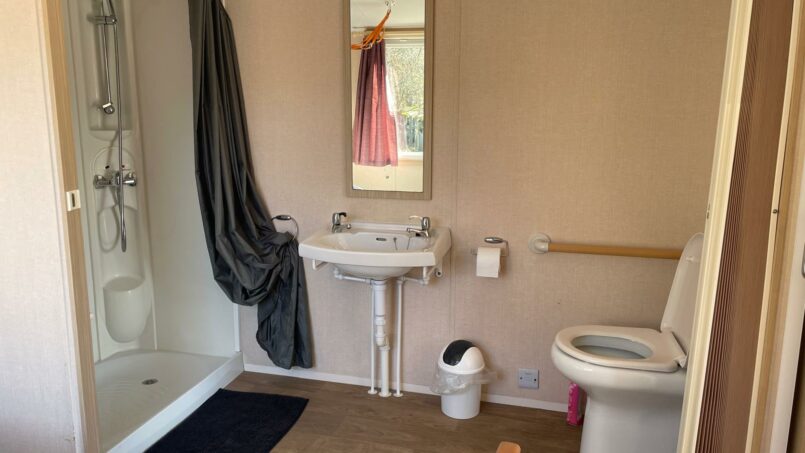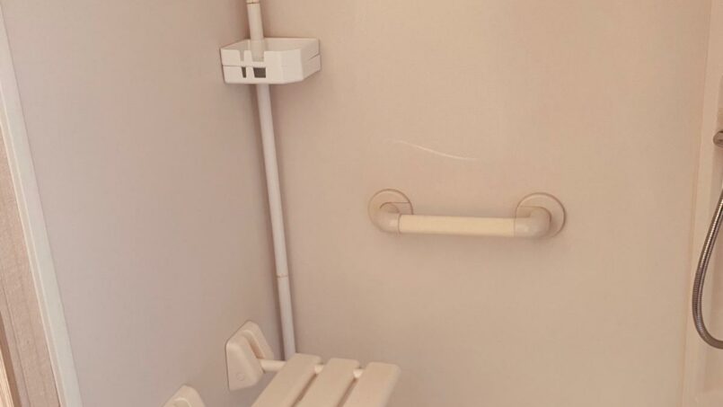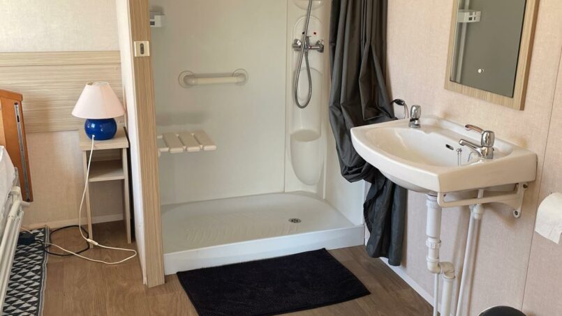 Selon le besoin de la personne, si la marche pour la douche pose un problème pour le transfert, nous disposons d’une grande douche à l’italienne à proximité (+/- 40 mètres) du mobil-home.